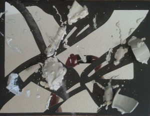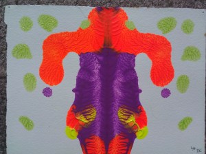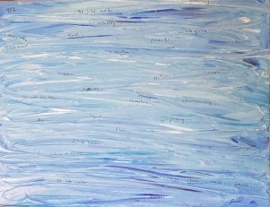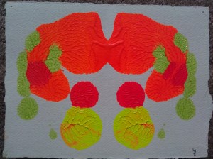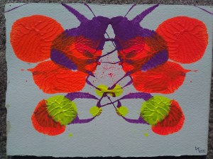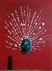 By 2000 I was painting exclusively in acrylic, and doing a lot of 3D mixed-media work, abstractions and pieces that used a lot of glow, glitter, ceramic adornments, and often working quite large. There were certainly pieces I could call self-portraits in the years between 1995 and 2014, when this next piece was painted, but they weren’t necessarily intended that way. (I think art as a form of self-expression of necessity says something about the artist, one way or another.)