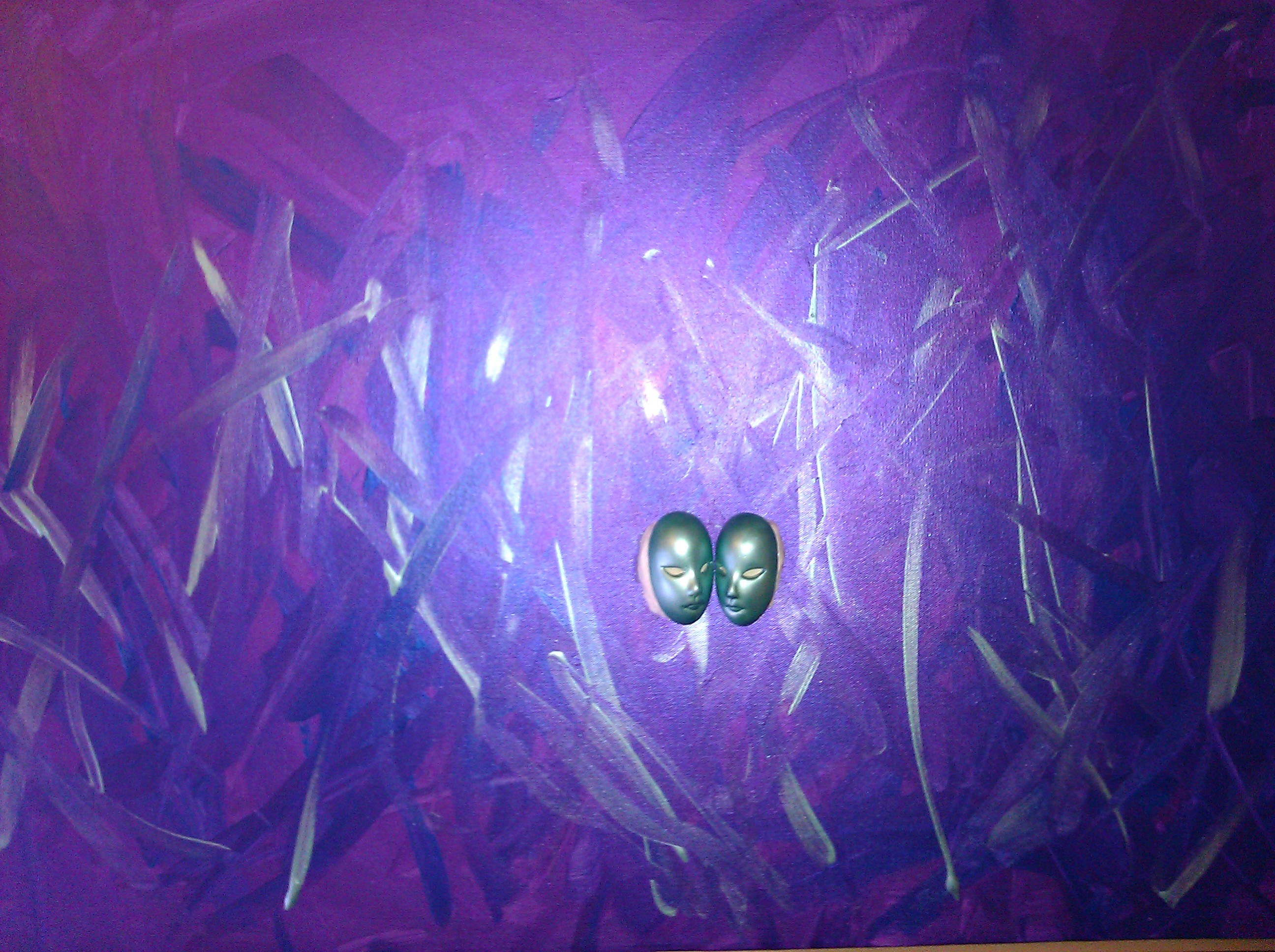 By 2000 I was painting exclusively in acrylic, and doing a lot of 3D mixed-media work, abstractions and pieces that used a lot of glow, glitter, ceramic adornments, and often working quite large. There were certainly pieces I could call self-portraits in the years between 1995 and 2014, when this next piece was painted, but they weren’t necessarily intended that way. (I think art as a form of self-expression of necessity says something about the artist, one way or another.)