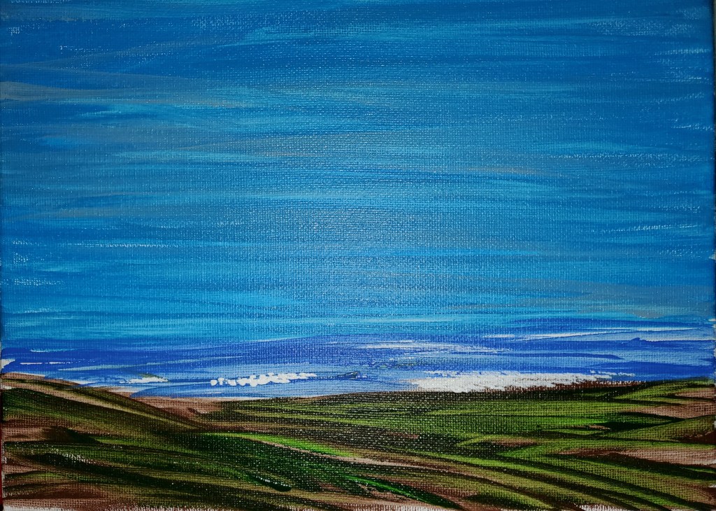 I consider this first one to be the “proper” first piece to come out of the new studio. “Nalla Was Here” was painted from a perspective of thinking over long-remembered places I haven’t seen or visited in many years, and the way time sort of “smooths over” some of the details. A friend I shared it with exclaimed when she saw it, taken by a similar sense of familiarity and remembrance. (This piece is not for sale.)