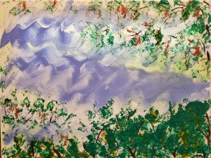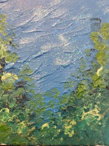 “Summer View” 8″ x 10″ acrylic on canvas w/glow & glitter, 2021